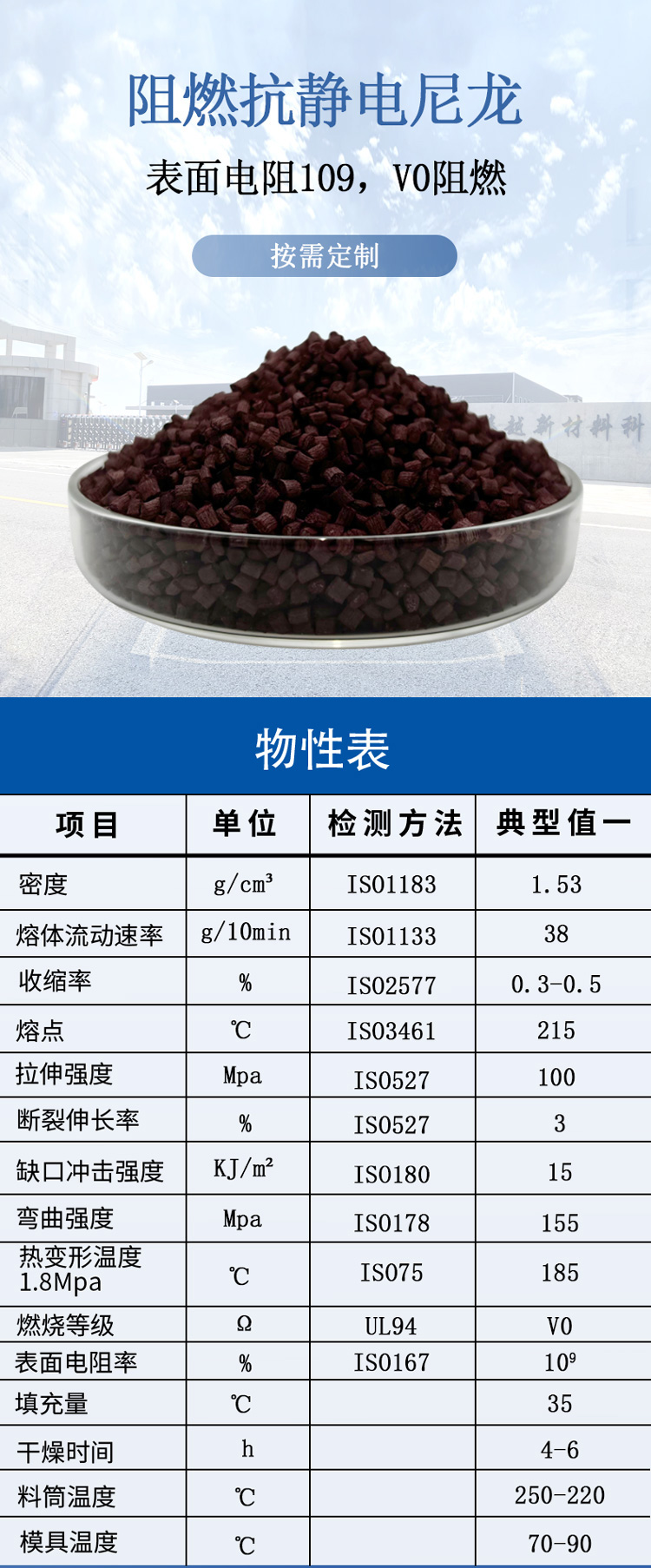 表面電阻109,V0阻燃,實現(xiàn)阻燃和抗靜電的相容,應(yīng)用于機械配件、礦井產(chǎn)品、消防器材