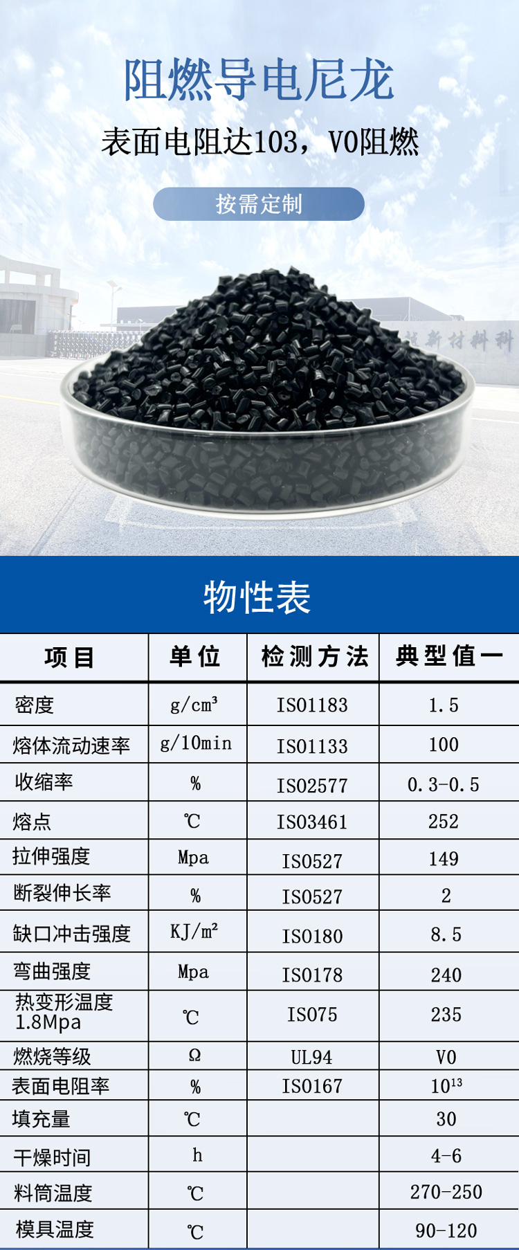 表面電阻達103,V0阻燃,黑色,應用于一些特殊產品